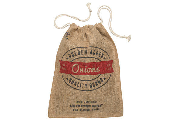 RetroKitchen onion sack helps to keep onions dry and last longer by storing in these hessian storage sacks. Sure looks cool hanging in the pantry, garage or shed.