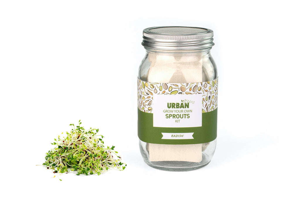 This Urban Greens Sprout Jar contains everything you need to grow your own fresh radish sprouts.